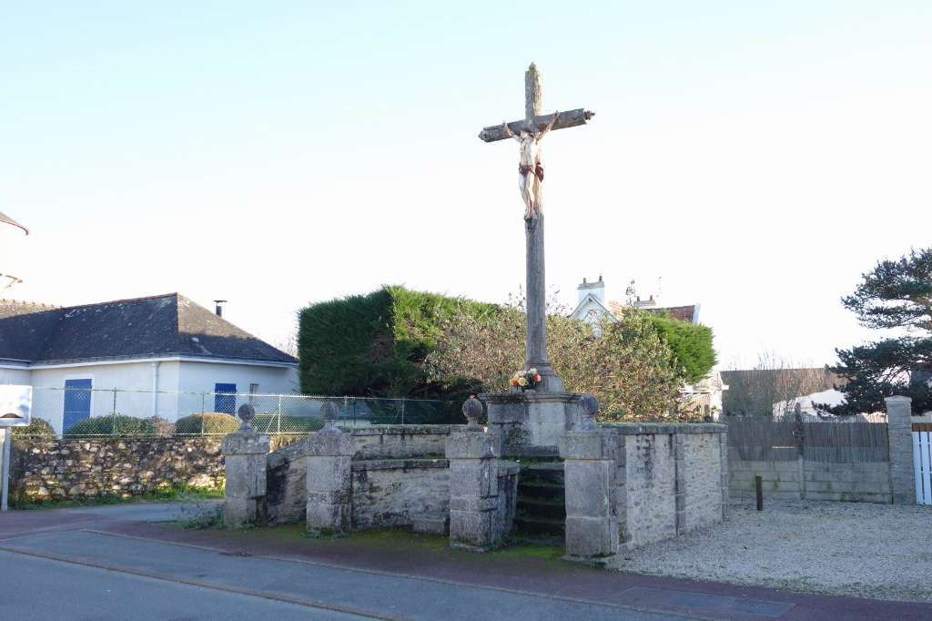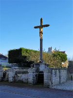 Soubassement en pierres de taille sur lequel sont gravées 2 dates : 1890 - 1921 Grande croix cylindrique en ciment imitant le bois, Christ en métal. Il est érigé dans le cadre d'une Mission en 1890. Il est daté aussi de 1921, en souvenir d'une autre Mission |