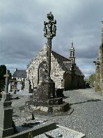 Au croisement de routes, Accès facile, Très visible, Propriété communale Trois degrés. Socle 1904. Fût armorié au noeud, Lesguern et- -. Crucifix, Vierge à L’Enfant. [YPC 1980] |