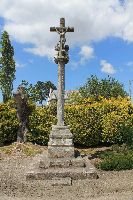 En bord de route, Au coeur d'un bourg, Accès facile, Très visible, Propriété communale Enclos. Quatre degrés. Socle. Fût à pans, chapiteau. Croix à fleurons, grand Christ. |