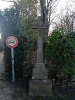 En bord de chemin, Accès facile, Très visible, Propriété communale Croix en granit avec Christ en métal inscription sur le socle : MISSION 1920 |