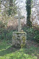 Au croisement de routes, Peu visible, Propriété privée, Monument déplacé Encastrée dans un talus, vestige d'une croix ou il ne subsiste que le soubassement en maçonnerie de moellons, le socle et une partie d'un fût à pans. Apparemment le talus fut construit après la destru ... |