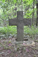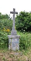 Dans un cimetière, Accès facile, Très visible, Propriété publique, Emplacement original Assise en béton, emmarchement 2 degrés en pierre de taille en schiste, socle monolithe en granit, inscription illisible en façade. Croix monolithe en granit, de section carrée. |