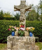 Au coeur d'un lieu-dit, Accès facile, Très visible, Propriété publique, Emplacement original Soubassement en maçonnerie de moellons; socle; croix, Christ sculpté en relief. |