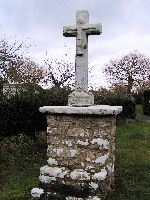 Dans un cimetière, Au coeur d'un bourg, Accès facile, Très visible, Propriété publique, Monument déplacé Soubassement pierre de taille, entablement mouluré, socle monolithe chanfreiné, croix monolithe de section carrée. |
