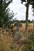 Au croisement de routes, Isolé en campagne Croix en bois détruite, encore visible sur Google Maps en parcourant Street View. croix auréolée et fleuronnée. |