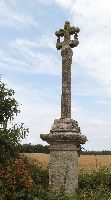 En bord de route, Au coeur d'un lieu-dit, Accès facile, Peu visible, Propriété privée Sa croix est en granit, le gros socle de granit porte une inscription devenue illisible |