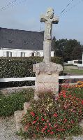 En bord de route, Accès facile, Très visible, Propriété publique Emmarchement 2 degrés; soubassement en appareillage en pierre de taille à base évasée; socle monolithe à pans, calice sculpté en relief en façade; croix monolithe à l'origine, brisée en trois morceaux ... |