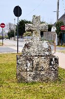 Au croisement de routes, Au coeur d'un lieu-dit, Accès facile, Très visible, Propriété communale, Monument déplacé Socle monolithe aux angles rabattus; fût de section carrée sur les 3/4 de sa hauteur puis à pans(sans doute raccourci). croix chanfreinée, constituée de la traverse et du montant vertical. inscription ... |