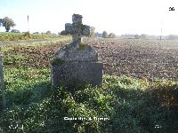 En bord de route, Accès facile, Très visible, Propriété publique, Monument déplacé Vestige d'une croix, socle monolithe posé au sol, fût cylindrique. Croix à panneaux, Christ en croix en façade, Vierge à l'Enfant au revers. |
