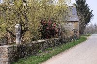 En bord de route, Accès facile, Très visible, Propriété privée, Monument déplacé Ensemble de trois croix intégrées à un muret. Croix (3,nord/est)socle monolithe encastré dans le muret, fût monolithe à pans, avec gravée la date de 1418 . Croix panneau à bâtière, Vierge l'enfant en ... |