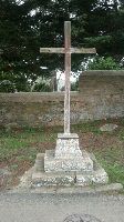 Dans un cimetière, Au coeur d'un bourg, Accès facile, Très visible, Propriété communale Croix en bois dressée sur un soubassement plus ancien, déplacé et de provenance inconnue. |